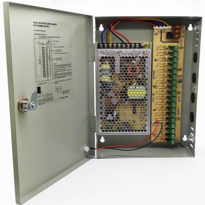 SN1816-18 MEANWELL Τροφοδοτικό κατανεμητής καμερών CCTV 18 εξόδων με συνολικό ρεύμα 16.7Α max (0.92Α max ανα έξοδο)