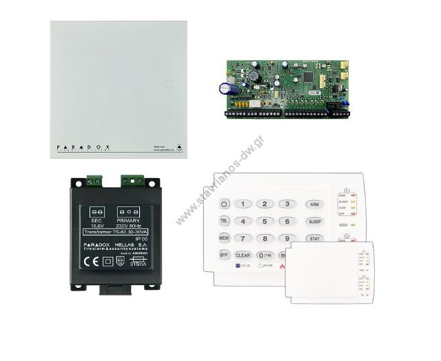 Συναγερμός PARADOX SP6000 (ΣΕΤ) Κεντρική μονάδα 8 ζωνών επεκτάσιμο έως και 32 ζωνών με Πληκτρολόγιο 10 ζωνών LED SP6000-SET1