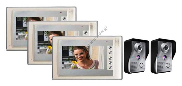 Σέτ Θυροτηλεόρασης έγχρωμες με 3 Μόνιτορ 7' TFT LCD και 2 κάμερες 1/4" CMOS απο ανοξείδωτο κράμα VDP-323
