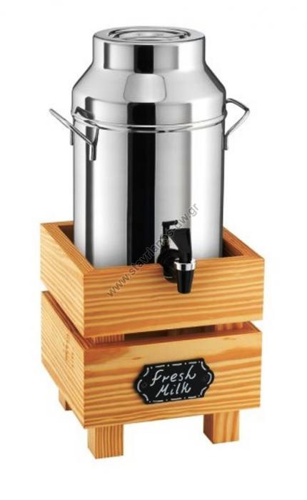 Διανεμητής Γάλακτος Ανοξείδωτος χωρητικότητας 5L με μασίφ ξύλινη βάση από σημύδα DW-31502