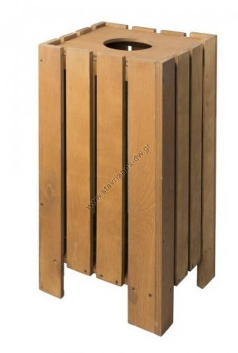 Κάδος Εξωτερικού χώρου Ξύλινος με στεφάνι εσωτερικά που κρατάει την σακούλα DW-33750