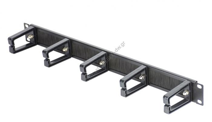 Πάνελ 1U διαχείρησης - τακτοποίησης καλωδίων με 5 Αγκιστρα συγκράτησης και <βούρτσα> για RACKS DW-38000