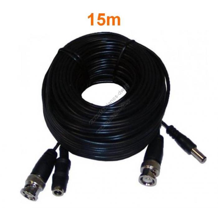 Καλώδιο CCTV 15m (Ετοιμο) με φίς Video BNC A/Α+DC (A/Θ) VDC-150