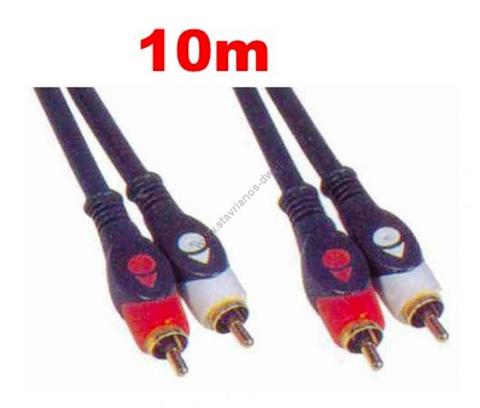 Καλώδιο 2 x RCA αρσενικά σε 2 x RCA αρσενικά σε μήκος 10m DW-30284B