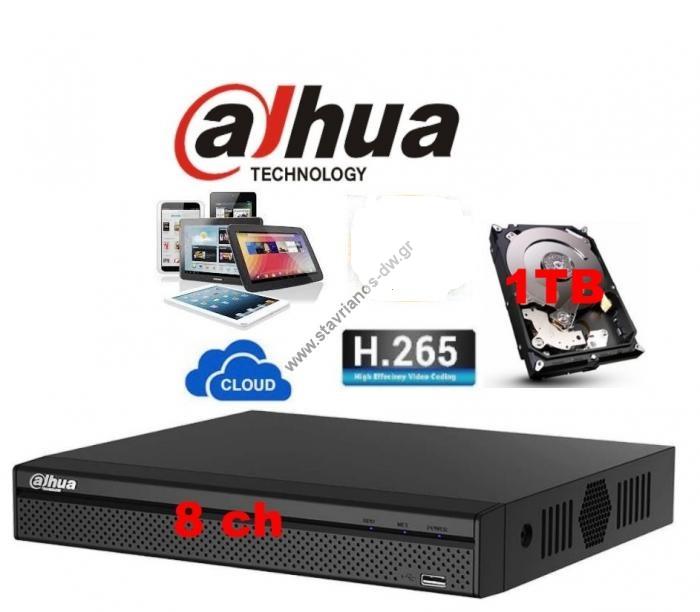 DAHUA XVR5108HE-I3 + 1TB DVR 8 Καναλιών H.265 και ανάλυση 5MP Lite WizSense A.I. με Alarm - Audio I/O με Δισκο 1ΤΒ