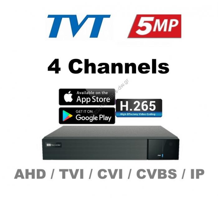 TVT TD-2104NS-HC H.265 ψηφιακό 5-υβριδικό καταγραφικό 4 καμερών 5 MP Lite (αναλογικών IP TVI CVI και AHD) 1 ήχου