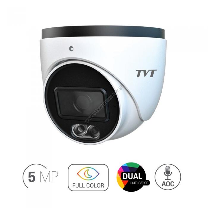TVT TD-7554AS2/AU/AW2 Κάμερα Dome Dual Illumination 5.0MP εξωτερικού χώρου (Weather proof - IP67) με φακό 2,8mm και ήχο