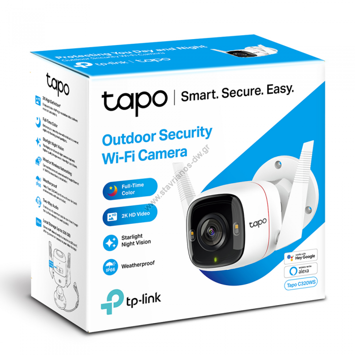 Tapo C320 TP-LINK Κάμερα WiFi Υψηλής ανάλυσης 2Κ QHD (4MP) εξωτερικού χώρου (IP66) Συνδέεται στο δίκτυο μέσω Ethernet ή WiFi (Tapo C320WS)