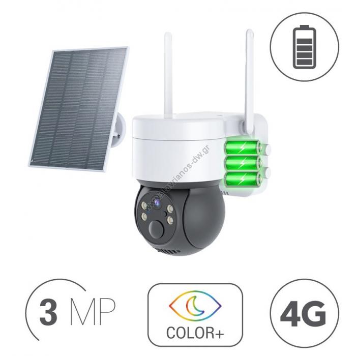 Έγχρωμη κάμερα 3MP PTZ 4G με ηλιακό πάνελ και μπαταρίες DW-8047