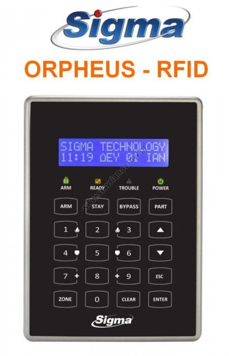 ORPHEUS KP/B-RFID Πληκτρολόγιο αφής (για κάρτες RFID) με φωτιζόμενα πλήκτρα και LCD οθόνη για τους πίνακες συναγερμού S-PRO SIGMA σε χρώμα μαύρο