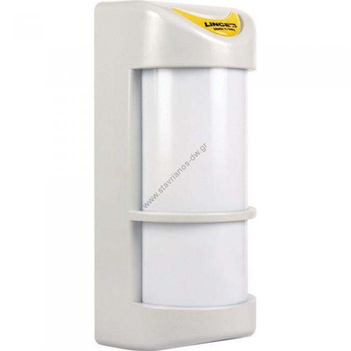 Εξωτερικός ανιχνευτής κουρτίνας υπέρυθρης τεχνολογίας με δυνατότητα κάλυψης 180ο.Διαθέτει 4 υπέρυθρους αισθητήρες (PIR)Ανίχνευση: δεξιά, αριστερά του ανιχνευτή.Ιδανικός για χώρους που κινούνται μικρά ζώα με ρυθμιζόμενη λειτουργία PET ανεξάρτητη σε κάθε πλευρά.6 ενδεικτικά LED.Ανεξάρτητη ρύθμιση ευαισθησίας PIR.Ψηφιακή επεξεργασία σήματος.Ψηφιακή ανιστάθμιση θερμοκρασίας.Απόσταση ανίχνευσης: ρυθμιζόμενη από 3 έως 15 μέτρα.Γωνία κάλυψης: ρυθμιζόμενη από 0~3ο από την προστατευόμενη επιφάνεια.Προστασία από ηλεκτρομαγνητικές παρεμβολές (EMI/RFI).Tροφοδοσία: 10 ÷ 15 VDCΚατανάλωση: 15 mAΠροστασία: ΙΡ44Θερμοκρασία λειτουργίας: -25 °C έως +60 °CΔιαστάσεις 189 x 81 x 76mm.