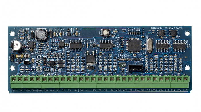 Πλακέτα επέκτασης 16 ενσύρματων ζωνών για τους πίνακες της σειράς xGenConnect (NXG-8, NXG-9, NXG-8E) η οποία συνδέεται στο NXG bus (POS, NEG, LAN+, LAN-) των πινάκων.