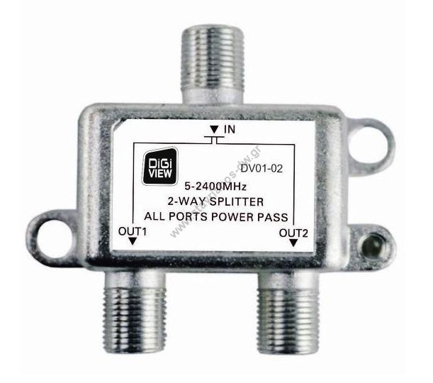 Διακλαδωτήρας - Splitter επίγειος και δορυφορικός 2 εξόδων με διέλευση τάσης DV01-02