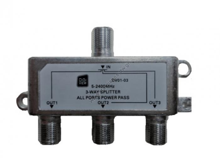 Διακλαδωτήρας - Splitter επίγειος και δορυφορικός 3 εξόδων με διέλευση τάσης DV01-03