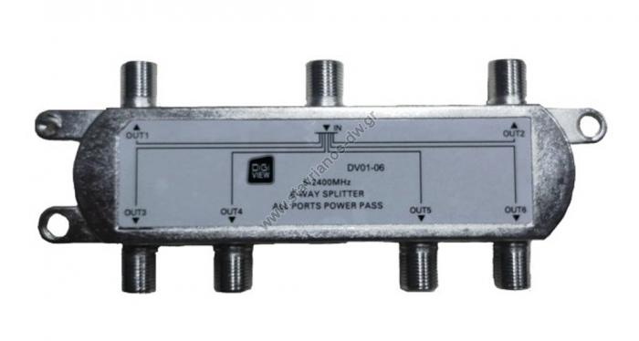 Διακλαδωτήρας - Splitter επίγειος και δορυφορικός 6 εξόδων με διέλευση τάσης DV01-06