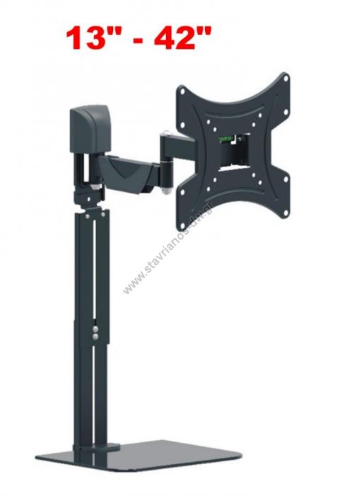 Βάση επιτοίχια τηλεόρασης απο 13"-42" με γυάλινο ράφι DUO-COMBO