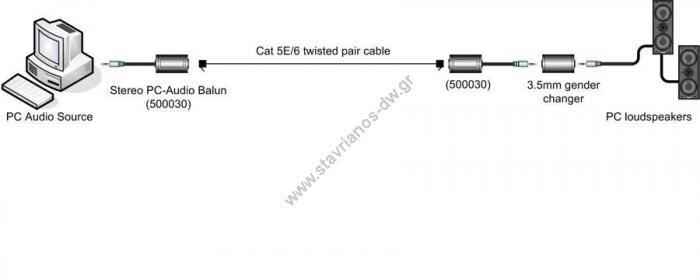 Stereo PC-Audio Balun για μεταφορά stereo αναλογικού σήματος ήχου από βύσμα (3.5mm mini jack) μέσω ενός καλωδίου UTP (Cat5/Cat6) DW-530 (DW-530)