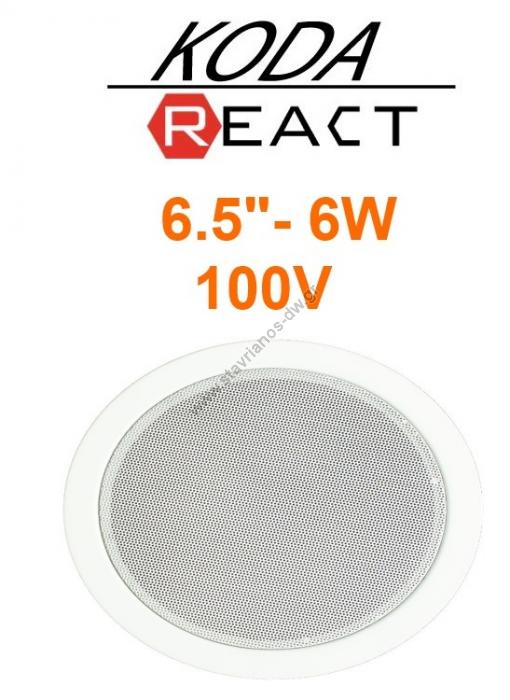 Ηχείο οροφής 6.5" 6W max στρογγυλό πλαίσιο με μετασχηματιστή 100V Λευκό χρώμα της Koda CSP-65W