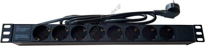 Πολύπριζο ρεύματος Πλαστικό 1U για Rack με 7 θέσεις σούκο και ισχύ 3500W max GN-1907P