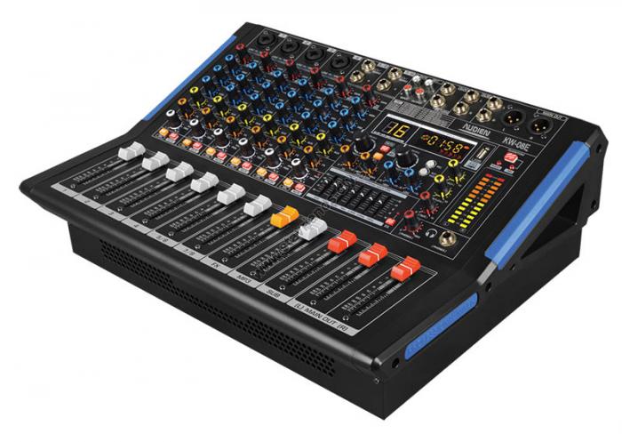 Αυτοενισχυόμενη κονσόλα με ενισχυτή 2 x 350W max και 4 mono κανάλια + 2 stereo + 1USB KW-08E