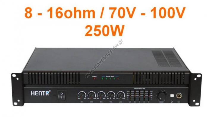 - Εξοδοι: 2 , 8 / 16 Ω & 70V / 100V