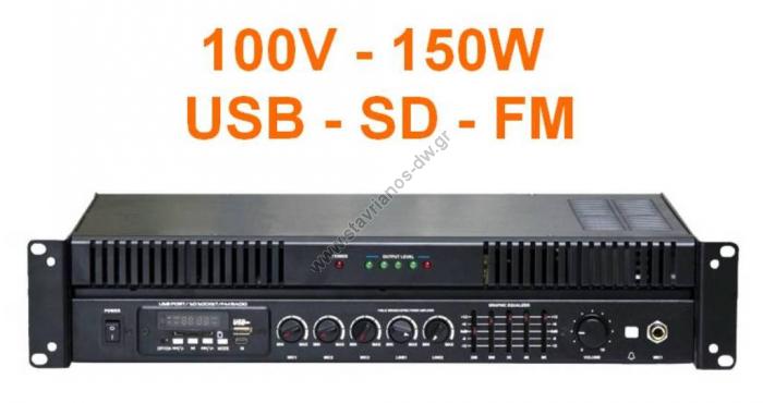 Μικροφωνικός ενισχυτής 100V με ισχύ 150W διαθέτει δέκτη FM και θύρα για σύνδεση Flash USB και SD MPA-300QUF (MPA-300QUF)