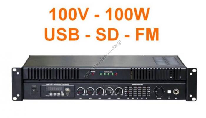 Μικροφωνικός ενισχυτής 100V με ισχύ 100W διαθέτει δέκτη FM και θύρα για σύνδεση Flash USB και SD MPA-100QUF (MPA-100QUF)