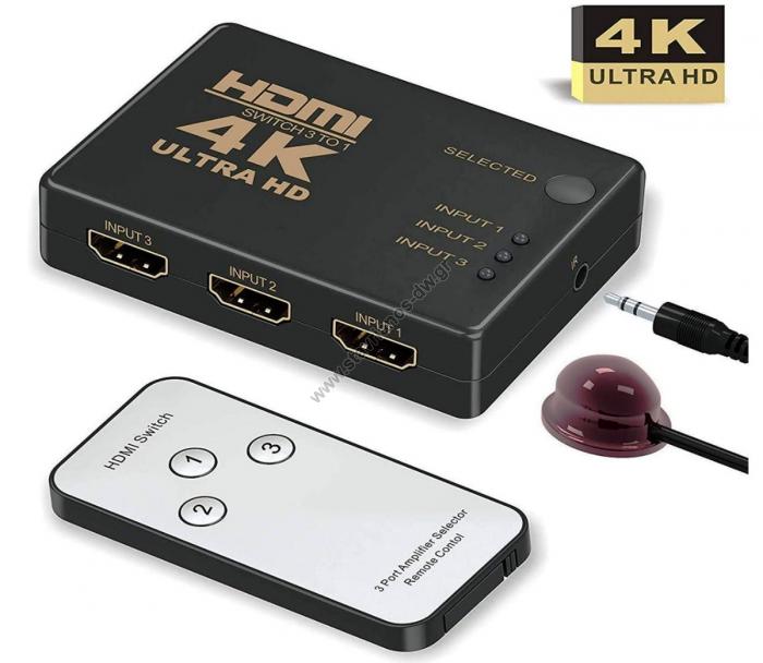 Επιλογέας SWITCHER HDMI Ultra Full HD με 3 εισόδους και 1 έξοδο με τηλεχειριστήριο SW01