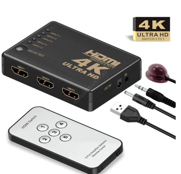 Επιλογέας SWITCHER HDMI Ultra Full HD 4K με 5 εισόδους και 1 έξοδο με τηλεχειριστήριο SW02