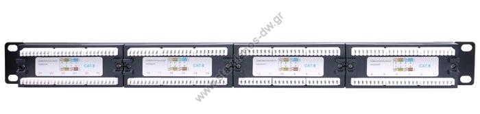 - Patch panel 1U, 24 θυρών για τοποθέτηση σε rack cabinet 19"