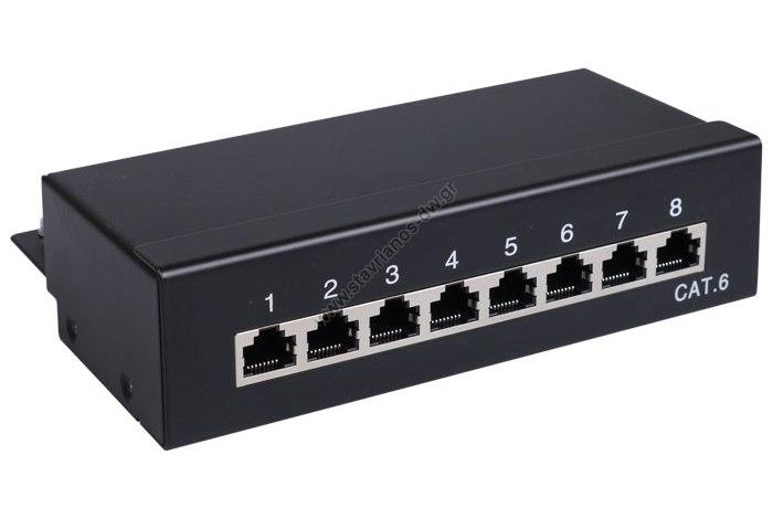 Patch panel κατηγορίας CAT 6 STP 8 θυρών σε μαύρο χρώμα 96105