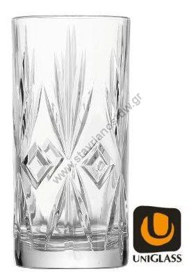 UNIGLASS Γυάλινο ποτήρι σκαλιστό για νερό και κοκτέιλ χωρητικότητας 33.5cl και διαστάσεων Φ7 x 14.8cm DW-29601