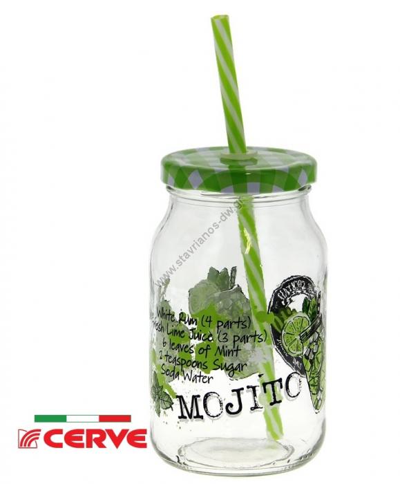 Γυάλινο Δοχείο για coctail - ποτό με καπάκι και καλαμάκι με χωρητικότητα 400ml DW-31621