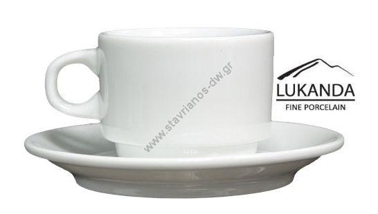 Φλυτζάνι με πιατάκι πορσελάνης στοιβαζόμενο με χωρητικότητα 100cc σε χρώμα λευκό της Lukanda DW-CPS100