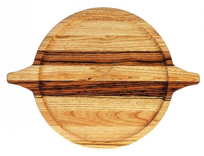 Πιάτο ξύλινο στρογγυλό απο καστανιά με λούκι και λαβές DW-31747