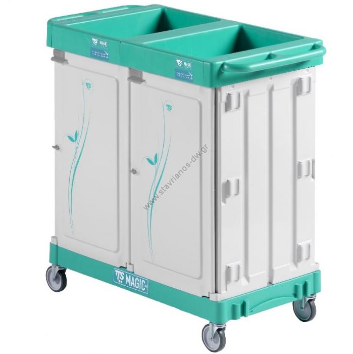 Καρότσι καθαριότητας πλαστικό 2 κλειστών χώρων με συρτάρι DW-40859