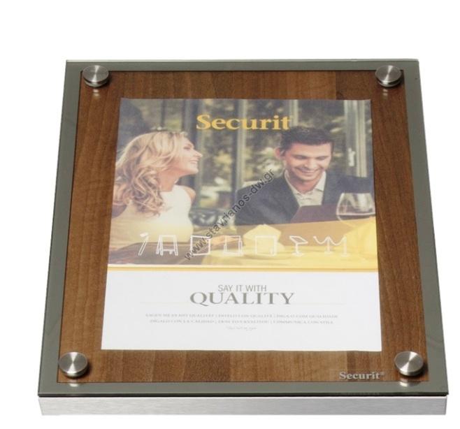 Ανοξείδωτη Κορνίζα επιτοίχια για A4 με πλαίσιο από ξύλο καρυδιάς με κάλυμμα από γυαλί DW-25041