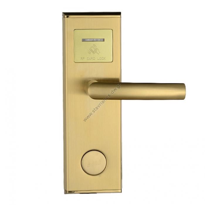 Ηλεκτρική κλειδαριά για κάρτες RFΗλεκτρονική κλειδαριά (ΔΕΞΙΑ) για δωμάτια ξενοδοχείων σε χρώμα χρυσό.