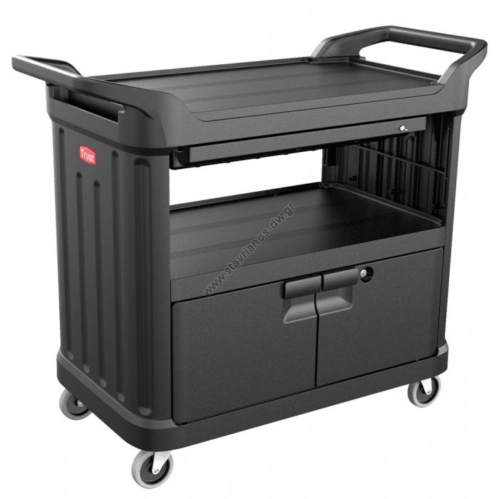 Καρότσι πλαστικό 3 ράφια με συρτάρι & πόρτα- Πόρτες με δυνατότητα κλειδώματος.