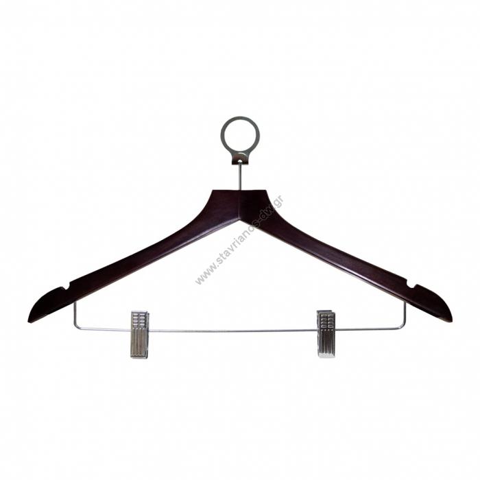 Αντικλεπτική κρεμάστρα ξύλινη σε απόχρωση καρυδιάς με 2 ρυθμιζόμενα clips/μανταλάκια DW-45036