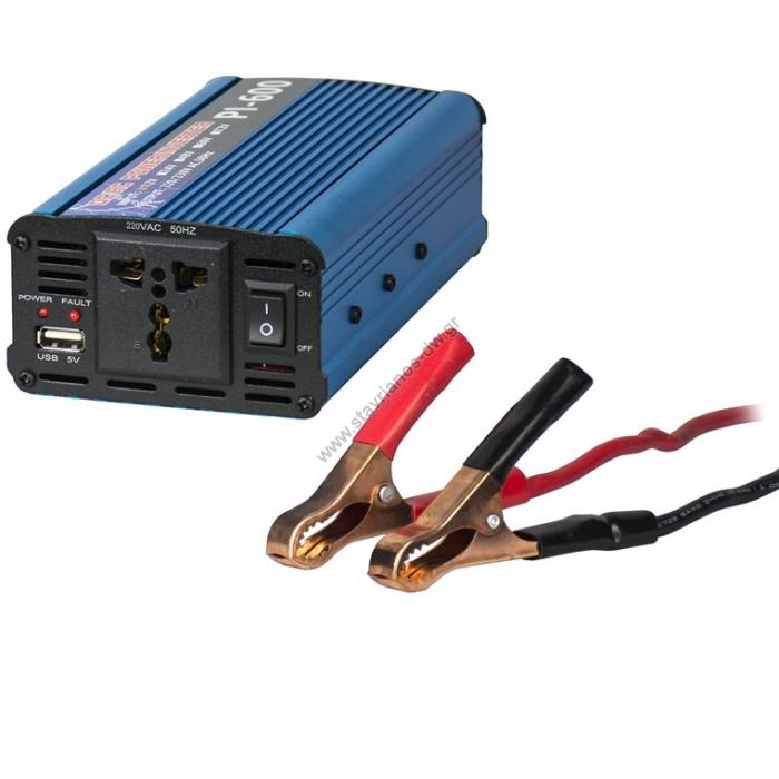 Μεταλλάκτης Inverter 12V DC - 230V AC 600 VA με κυματομορφή τροποποιημένου ημιτόνου PI-600