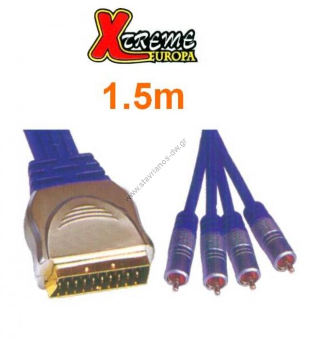 Καλώδιο Scart αρσενικό ισιο σε 4 x RCA αρσενικά νίκελ σε μήκος 1.5m CR-644/1.5M
