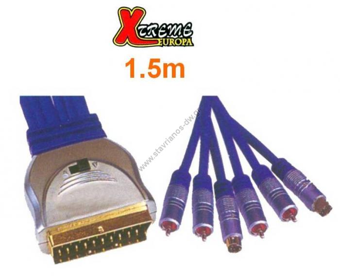 Καλώδιο Scart αρσενικό ισιο σε 4 x RCA αρσενικά + 2 x S-VHS (video) αρσενικά νίκελ σε μήκος 1.5m CR-647/1.5M