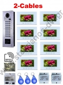 2-CABLES-RFID-SET5 Κίτ Θυροτηλεόρασης RFID έγχρωμη με 2 καλώδια με 8 κουδούνια - διαμέρισματα (2-CABLES-RFID-SET5)
