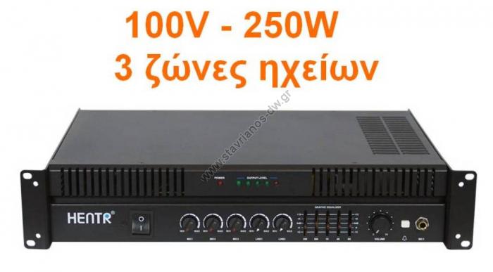 MPA-500QF Μικροφωνικός Ενισχυτής 250W με 3 Εισόδους Μικροφώνου και 3 ζώνες