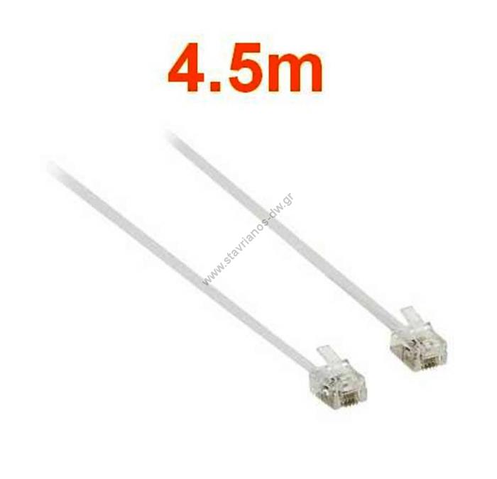 Καλωδίωση γραμμής τηλεφώνου με ακροδέκτες 6p4c σε μήκος 4.5m και χρώμα λευκό TA-1031B