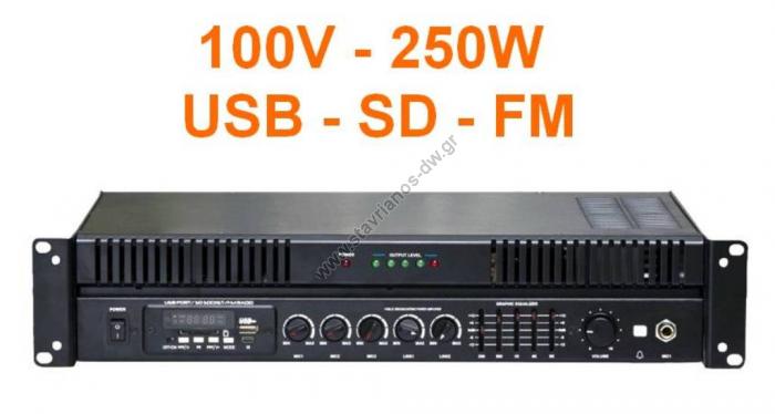 Μικροφωνικός ενισχυτής 100V με ισχύ 250W διαθέτει δέκτη FM και θύρα για σύνδεση Flash USB και SD MPA-500QUF (MPA-500QUF)