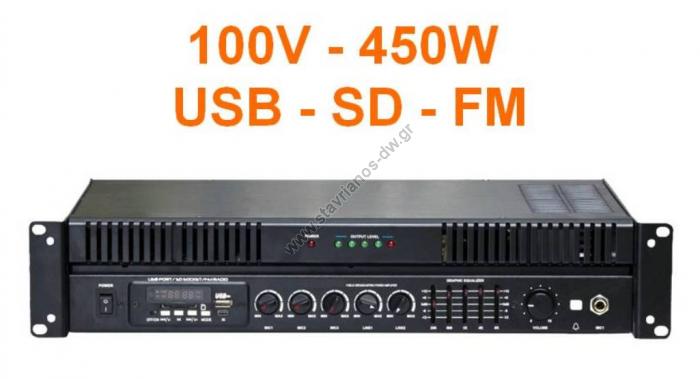 Μικροφωνικός ενισχυτής 100V με ισχύ 450W διαθέτει δέκτη FM και θύρα για σύνδεση Flash USB και SD MPA-900QUF (MPA-900QUF)