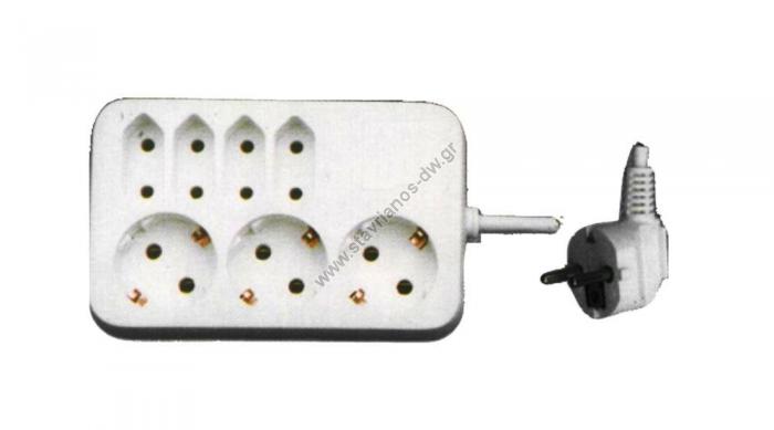 Πολύπριζο χωρίς διακόπτη με 3 θέσεις σούκο και 4 θέσεις απλές με διατομή καλωδίου 3X1.5mm G03/4S
