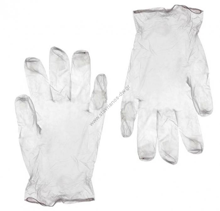 Γάντια μιας χρήσης Βινυλίου χωρίς Λατέξ με πούδρα σε χρώμα Λευκό MEDIUM (σετ 100τμχ) DW-13239